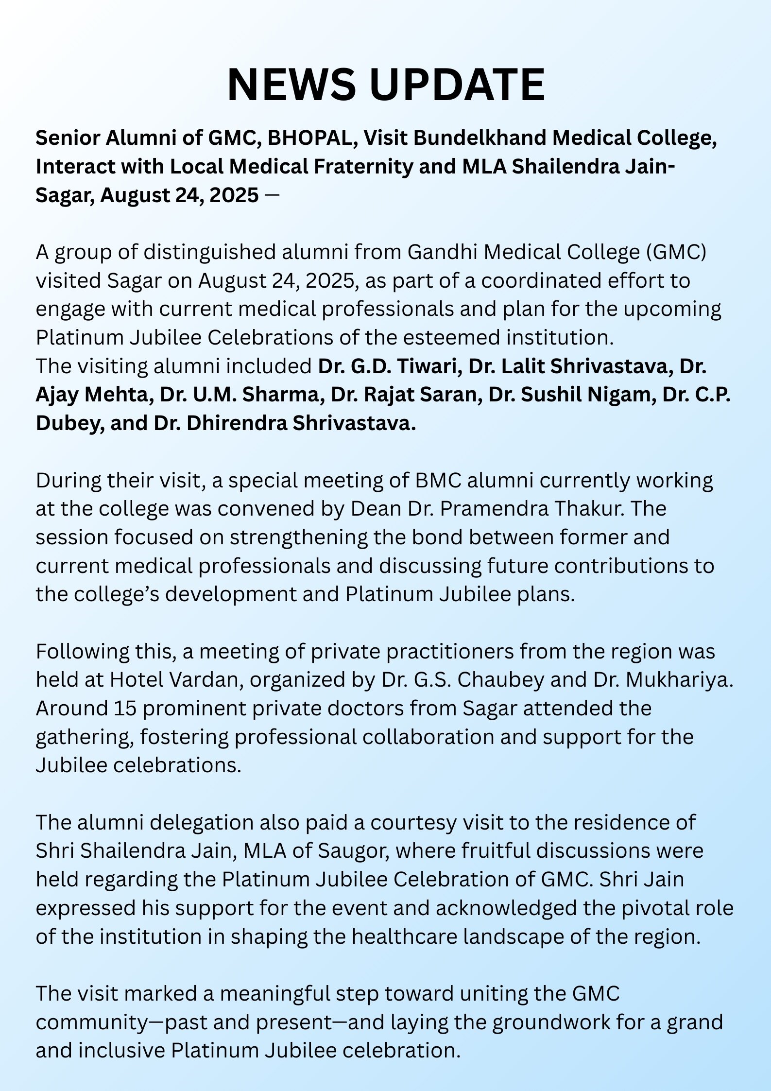 Bank Details Registration Form QR Code GMC Mahakumbh NEWS IMAGE 1 NEWS IMAGE 1 PIC NEWS IMAGE 1 PIC GMC Connect Newsletter June 25 GMC Connect Newsletter July 25 GMC Connect Newsletter August 25 Alumni Meeting 20-09-2025 Alumni meeting- 12 JAN 25