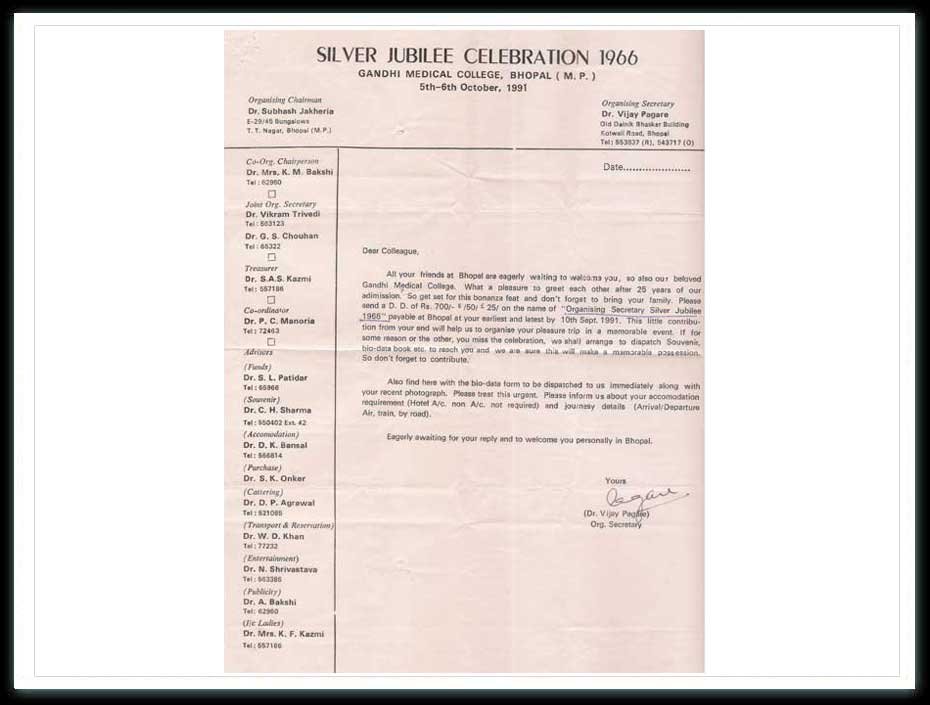 The batch celebrate its 25th year SILVER JUBILEE in the year 1991 at Bhopal..