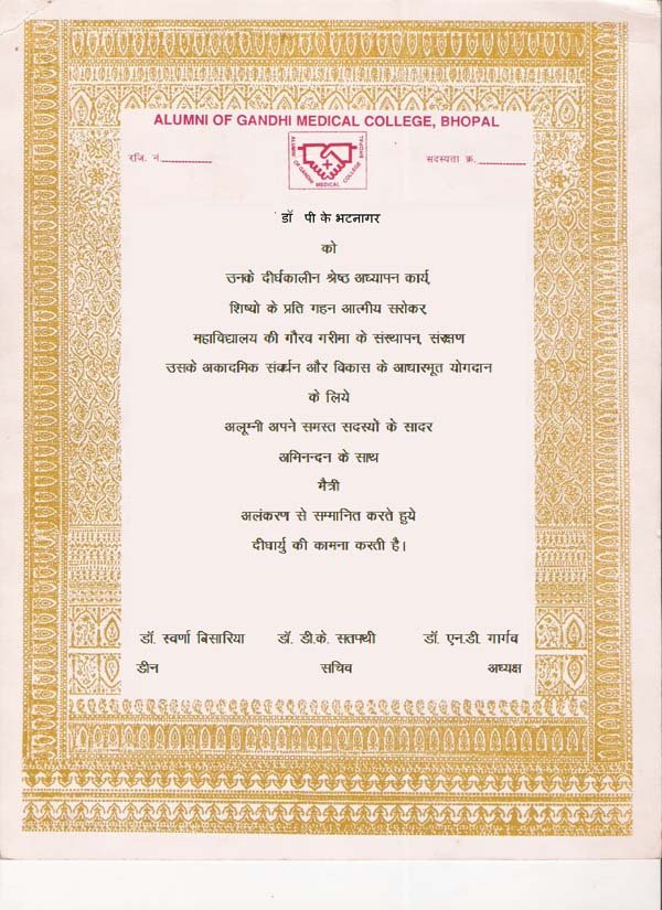 Dr. P.K. Bhatnagar - Founder Teacher (Dentistry)